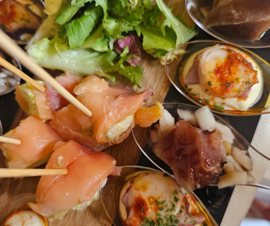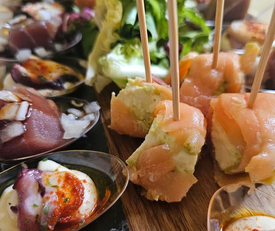 Beautiful Alamedas se encarga del cátering, que puede consistir en un desayuno o un cocktail con una degustación variada con dados de atún, rollitos de salmón, croquetitas, saquitos, mini burgers, trufitas, sorbetes y otros. Puede ser también un cátering con productos ecológicos.
